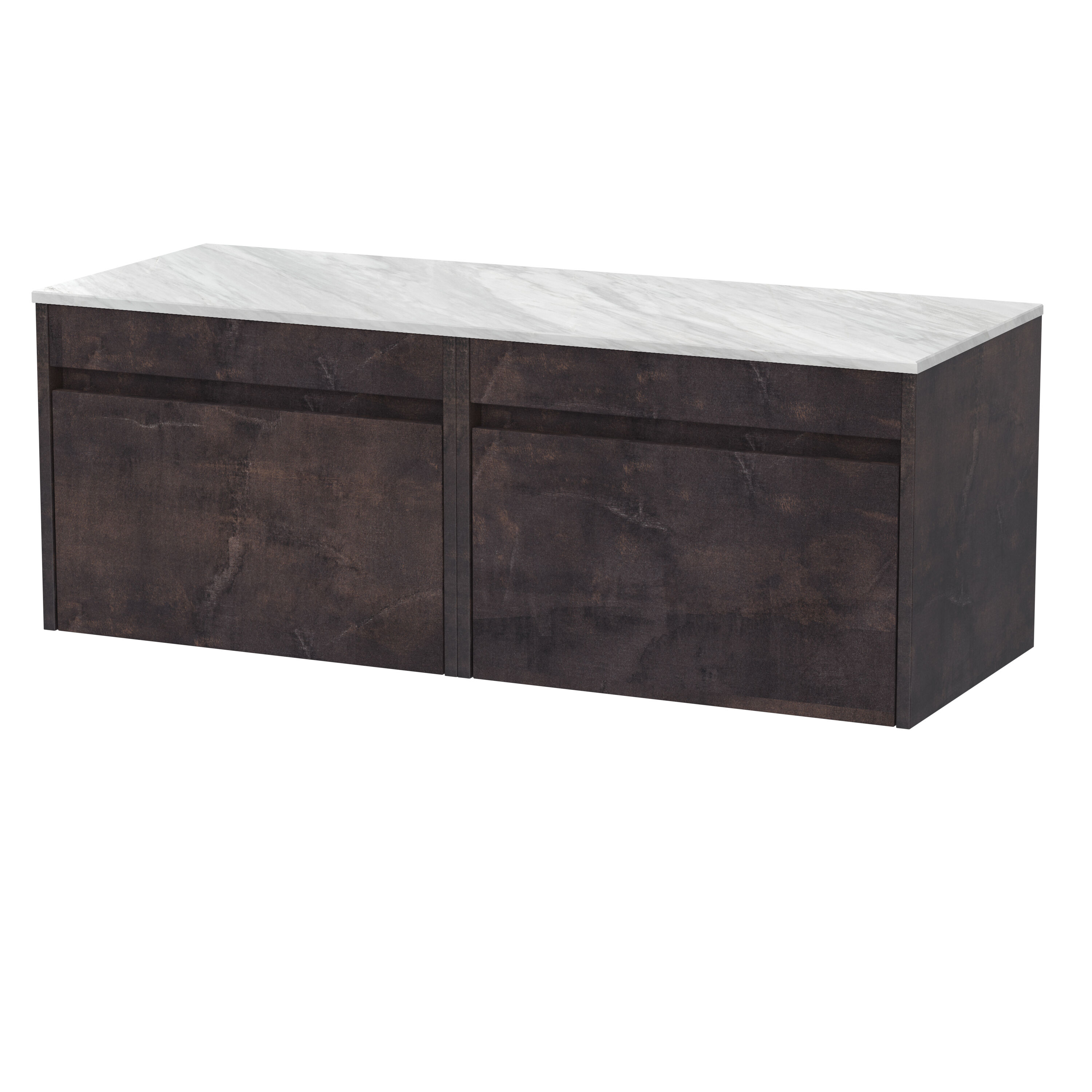 BC Designs Loftwood 1200mm Wall Hung 2 Drawer Unit With Marble Worktop & Soft Close Drawers - Metallic Slate