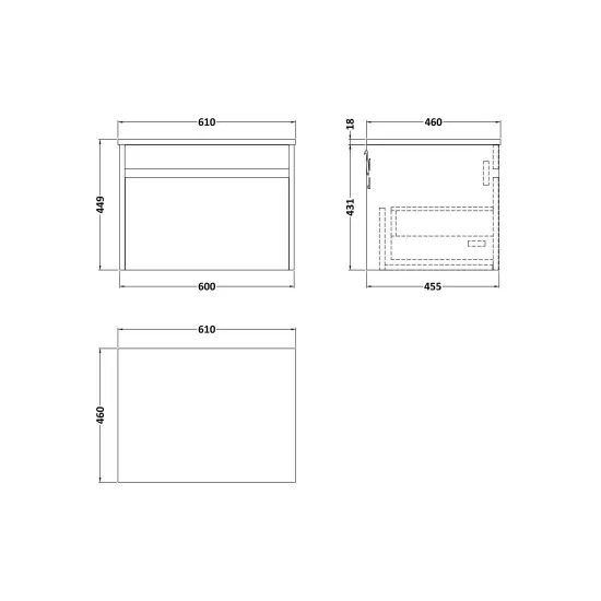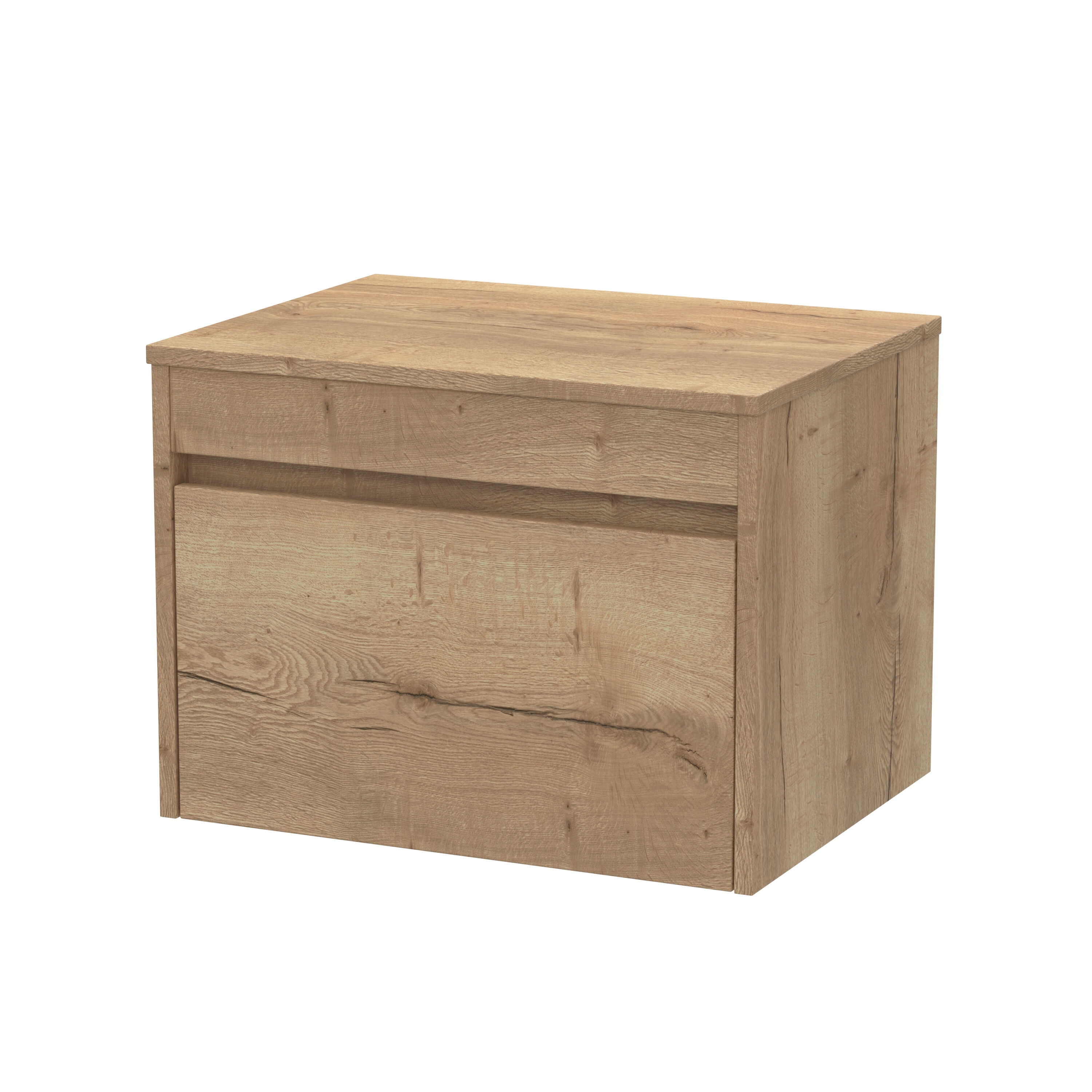 nuie Lux Loftwood 600mm Wall Hung 1 Drawer Unit and Co-ordinating Worktop - Autumn Oak