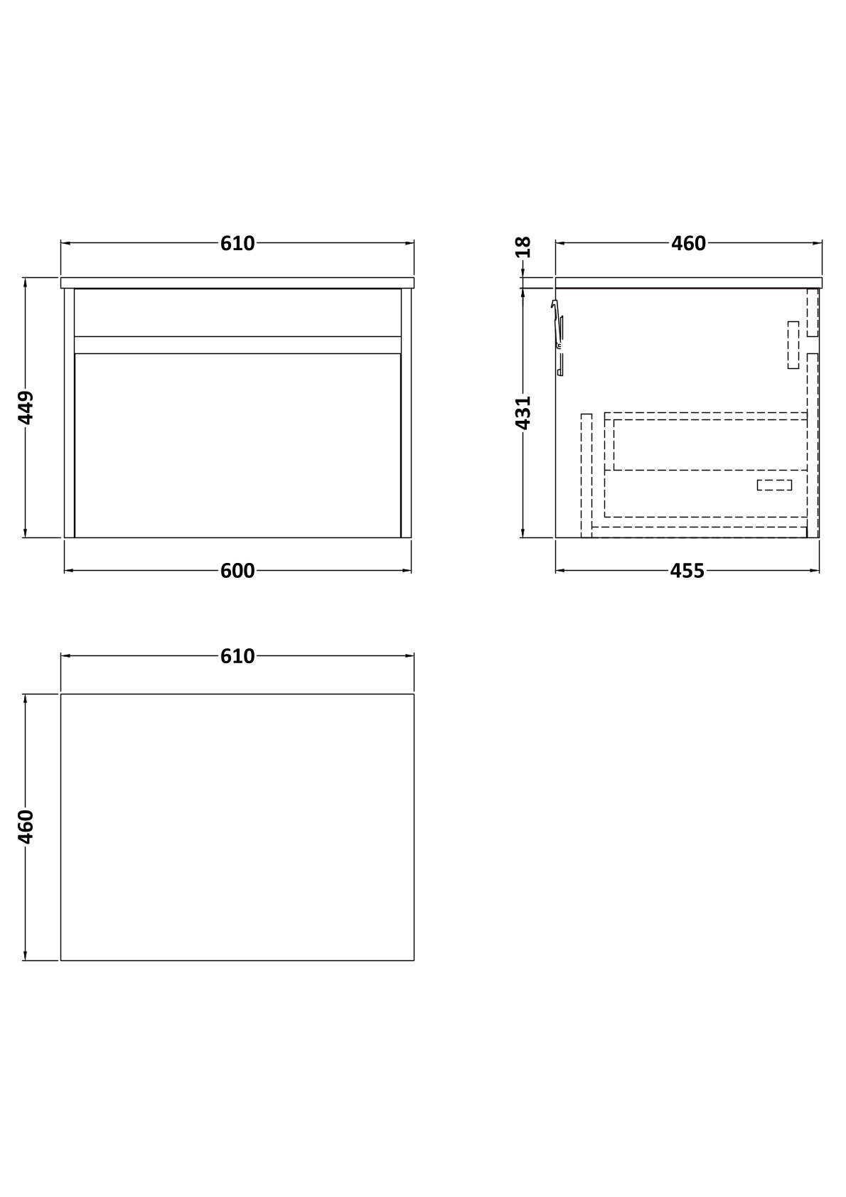 Loftwood 600mm Wall Hung 1 Drawer Unit and Co-ordinating Worktop - Graphite Grey Woodgrain