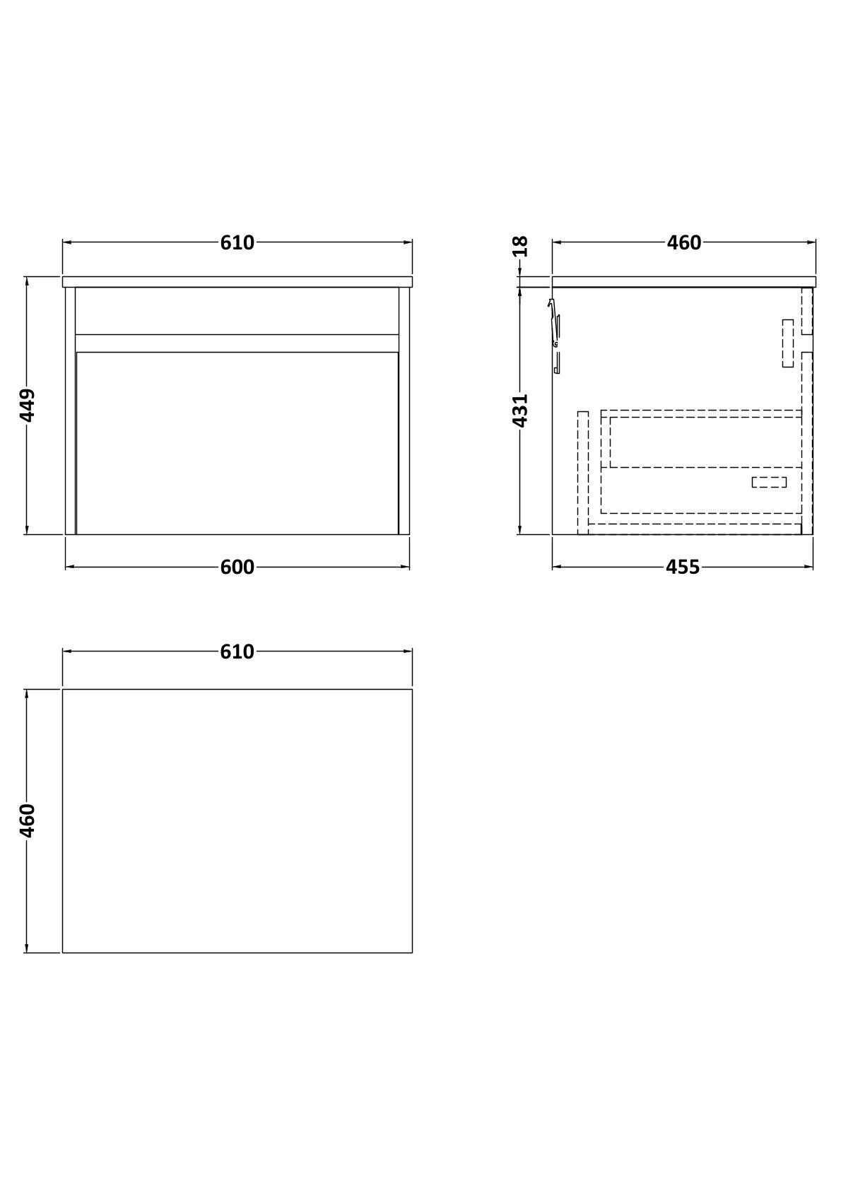 nuie Lux Loftwood 600mm Wall Hung 1 Drawer Unit and Marble Worktop - Bleached Oak