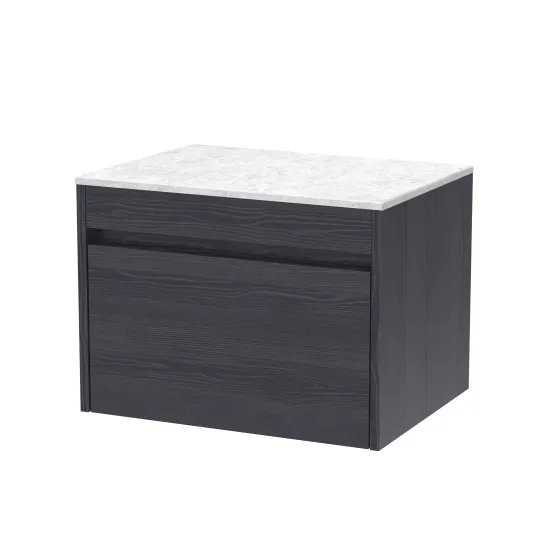 nuie Lux Loftwood 600mm Wall Hung 1 Drawer Unit and Marble Worktop - Graphite Grey Woodgrain