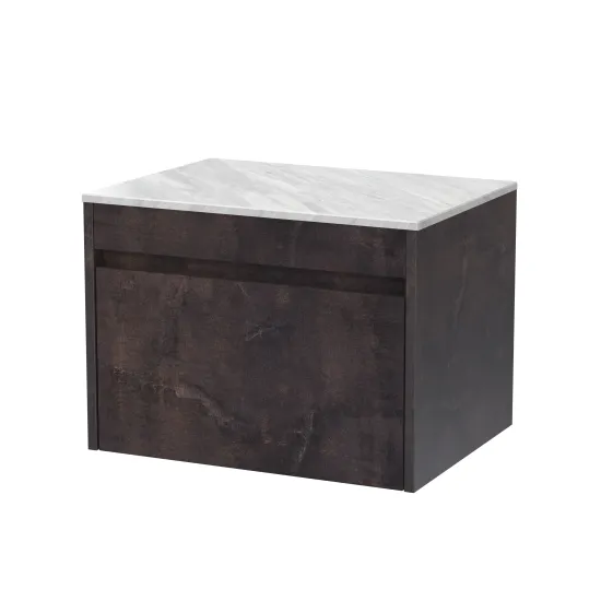 BC Designs Loftwood 600mm Metallic Slate Wall Hung 1 Drawer Unit and Marble Worktop With Soft Close Drawers