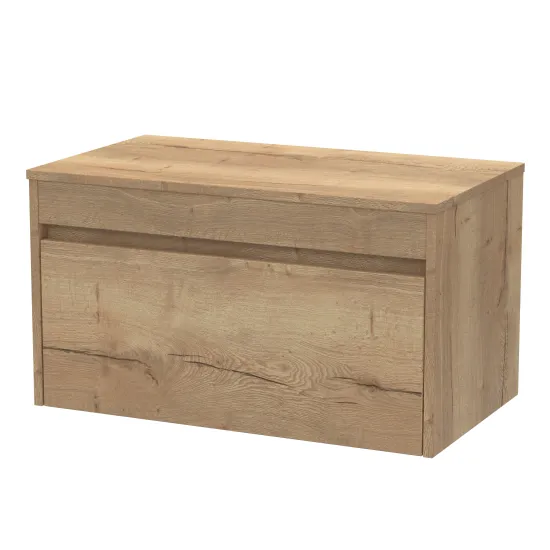 BC Designs Loftwood 800mm Wall Hung 1 Drawer Unit and Co-ordinating Worktop - Autumn Oak