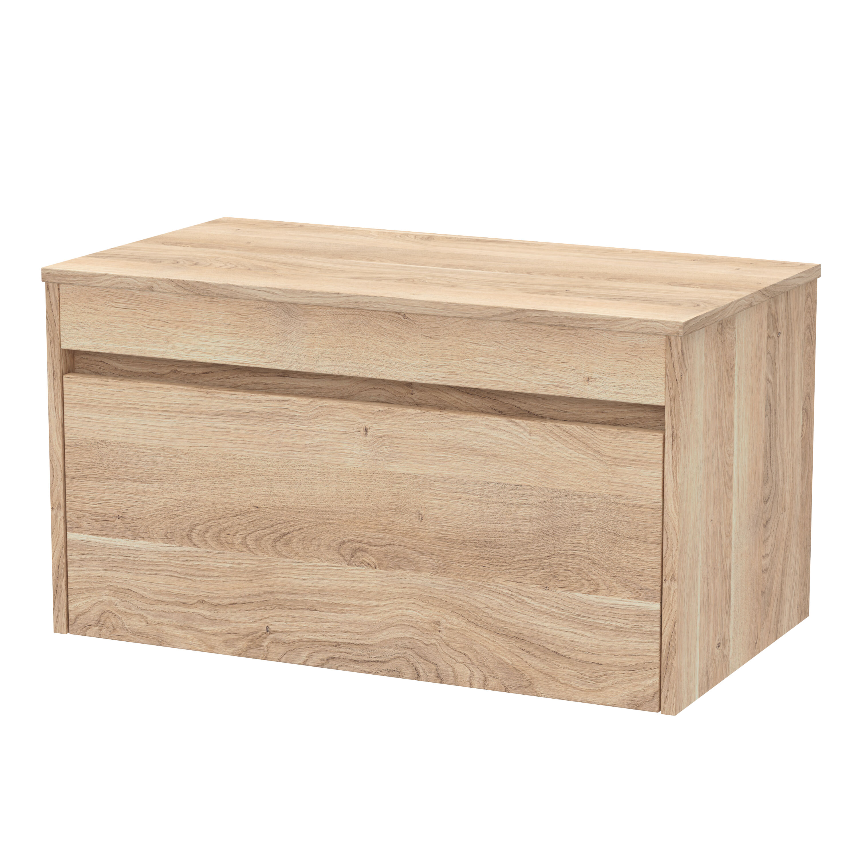nuie Lux Loftwood 800mm Wall Hung 1 Drawer Unit and Co-ordinating Worktop - Bleached Oak