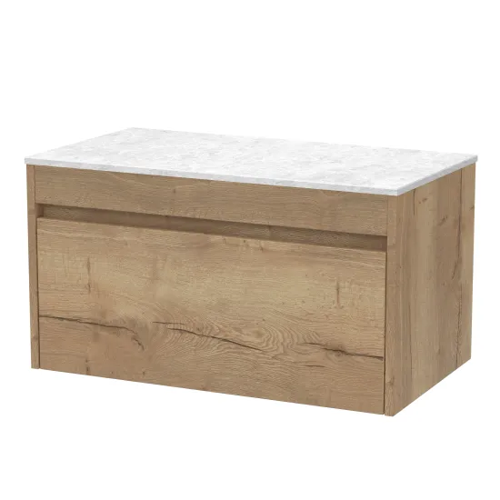 Loftwood 800mm Wall Hung 1 Drawer Unit and Marble Worktop - Autumn Oak