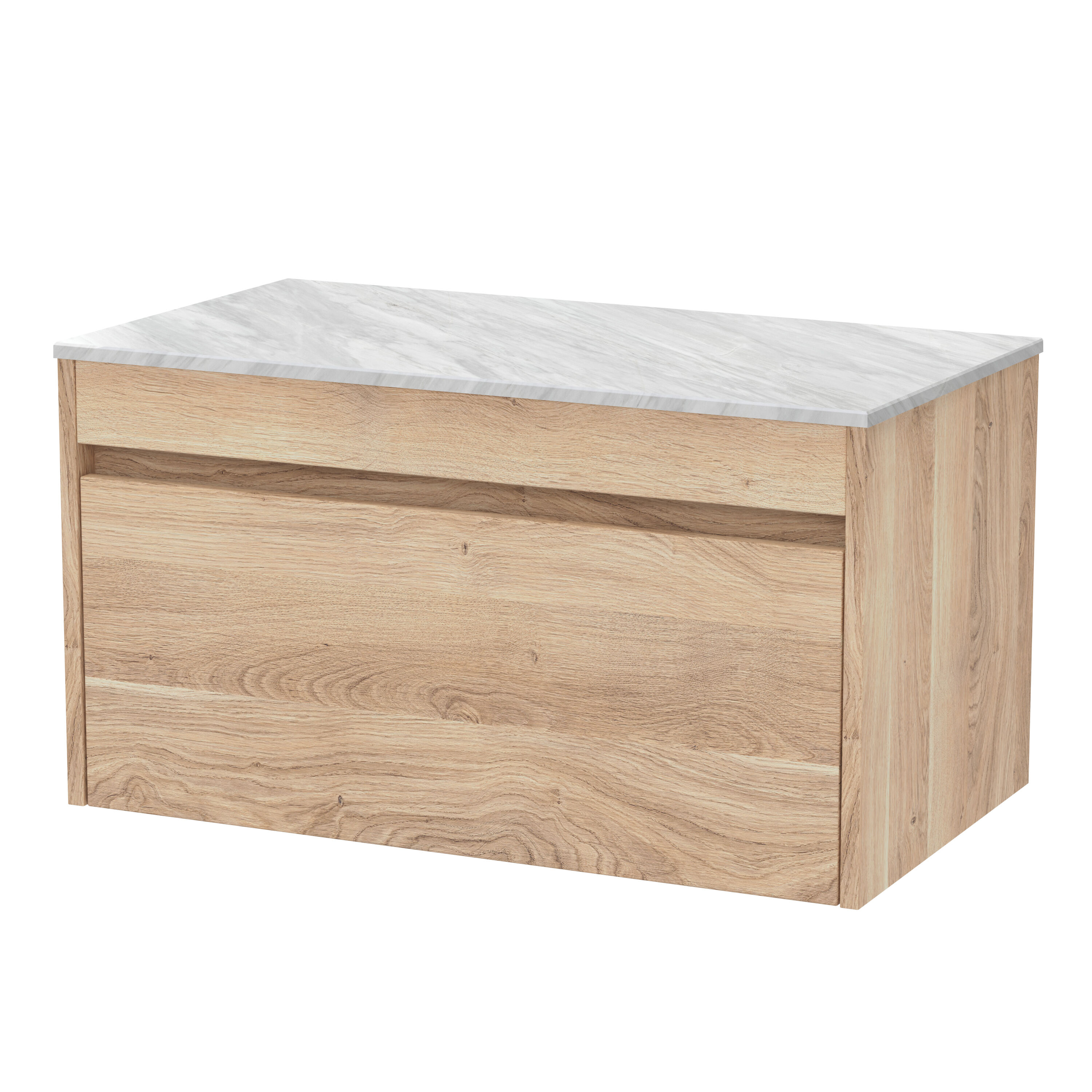 nuie Lux Loftwood 800mm Wall Hung 1 Drawer Unit and Marble Worktop - Bleached Oak