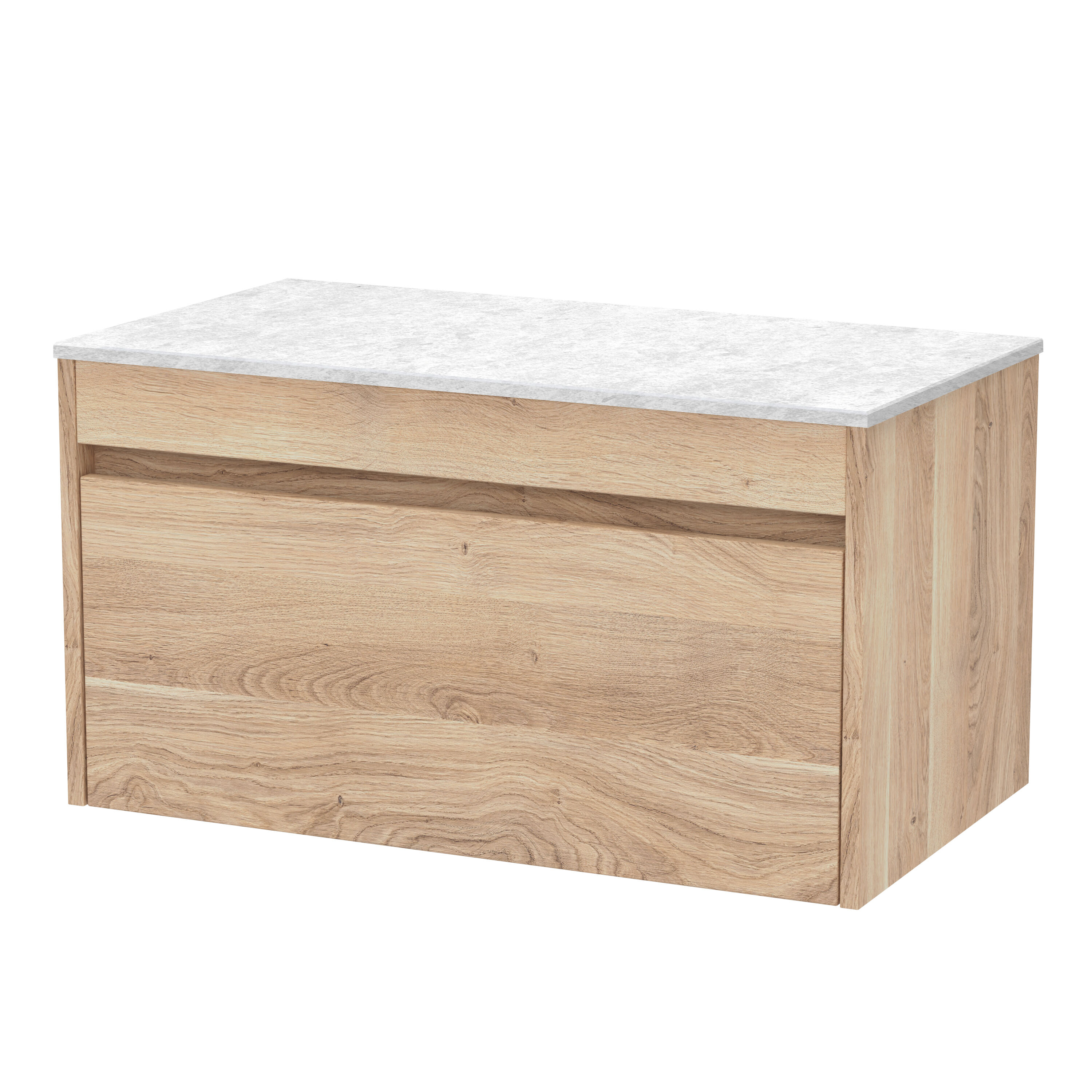 Loftwood 800mm Wall Hung 1 Drawer Unit and Marble Worktop - Bleached Oak