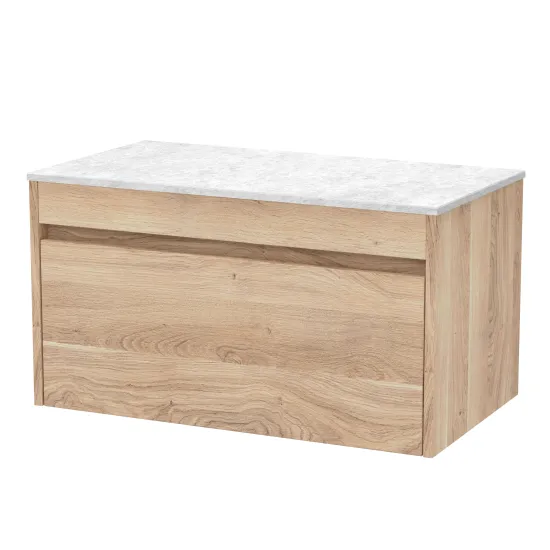 nuie Lux Loftwood 800mm Wall Hung 1 Drawer Unit and Marble Worktop - Bleached Oak
