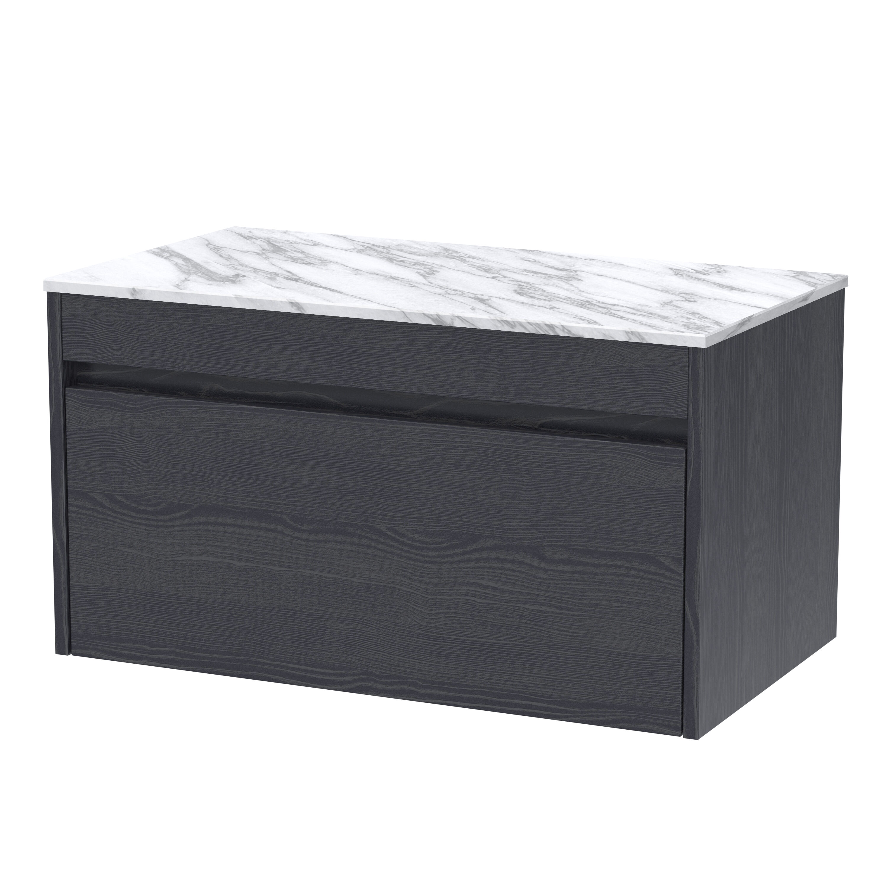 nuie Lux Loftwood 800mm Wall Hung 1 Drawer Unit and Marble Worktop - Graphite Grey Woodgrain