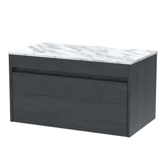 Loftwood 800mm Wall Hung 1 Drawer Unit and Marble Worktop - Graphite Grey Woodgrain