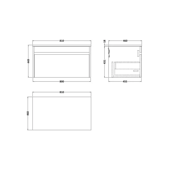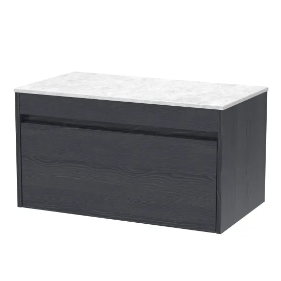 nuie Lux Loftwood 800mm Wall Hung 1 Drawer Unit and Marble Worktop - Graphite Grey Woodgrain