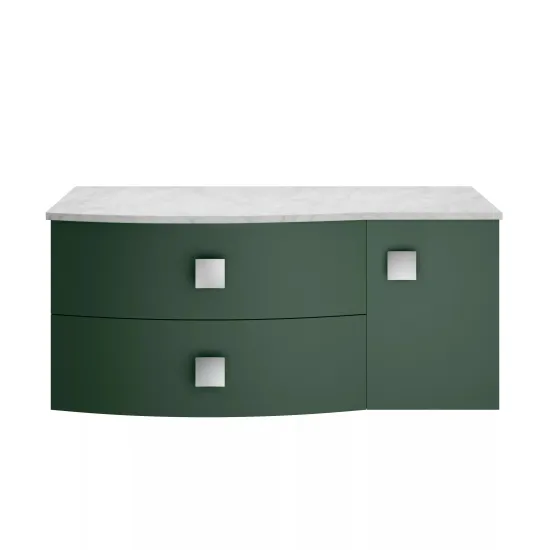 Nuie Lux Hartwell Wall Hung Left Hand 2 Drawer 1 Door Vanity Unit with Grey Marble Top 1000mm - Hunter Green