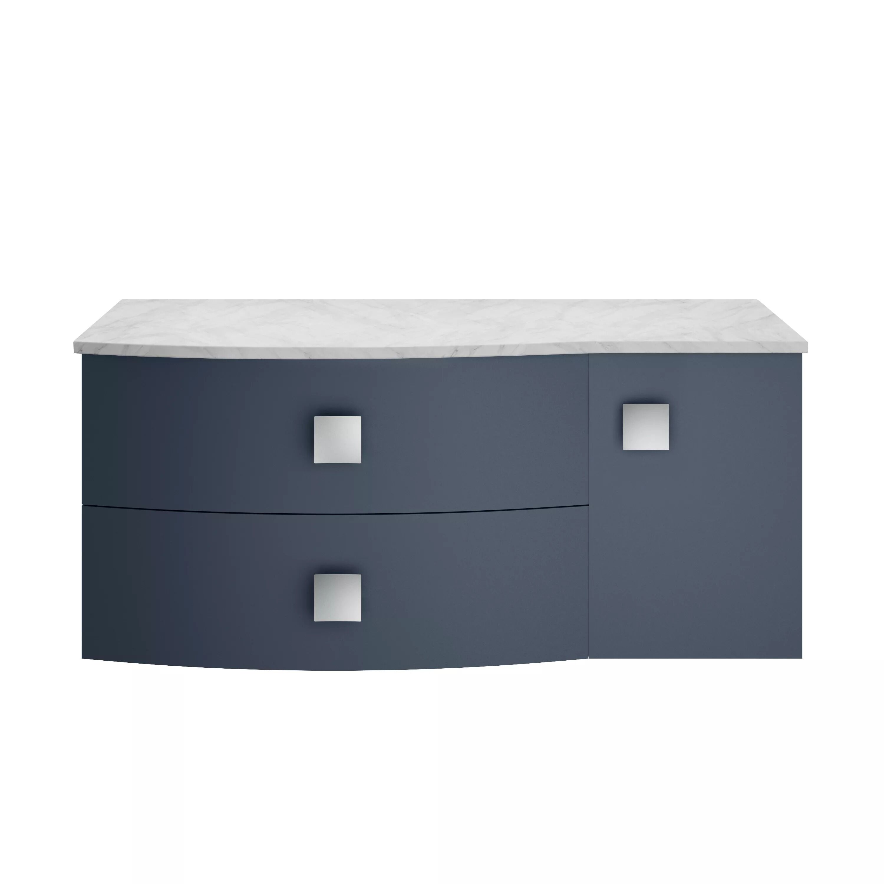 Nuie Lux Hartwell 1000mm Mineral Blue Wall Hung Left Hand 2 Drawer 1 Door Vanity Unit With Marble Top