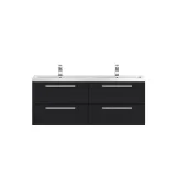 Hudson Reed Quartet 1440mm Charcoal Black Wall Hung Vanity Unit With Twin Polymarble Basin