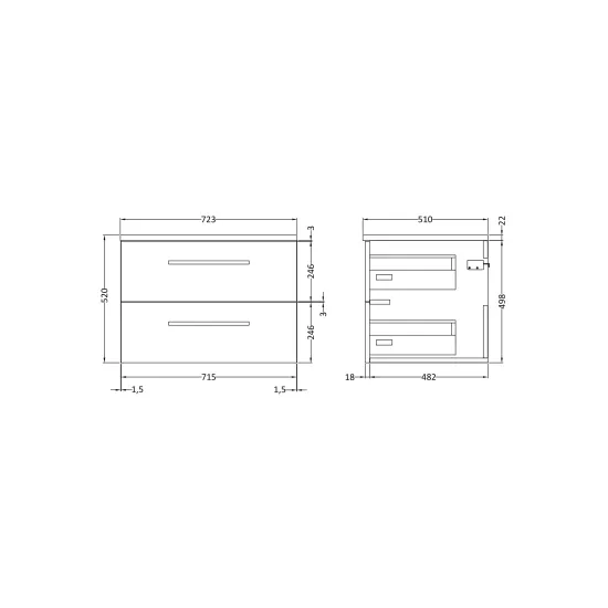 Hudson Reed Quartet 720mm Gloss Grey Wall Hung 2 Drawer Cabinet With Worktop and Handle