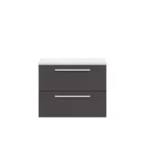 Hudson Reed Quartet 720mm Gloss Grey Wall Hung 2 Drawer Cabinet With Worktop and Handle