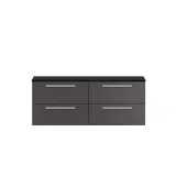 Hudson Reed Quartet Wall Hung 4 Drawer Double Cabinet with Sparkling Black Worktop 1440mm - Gloss White