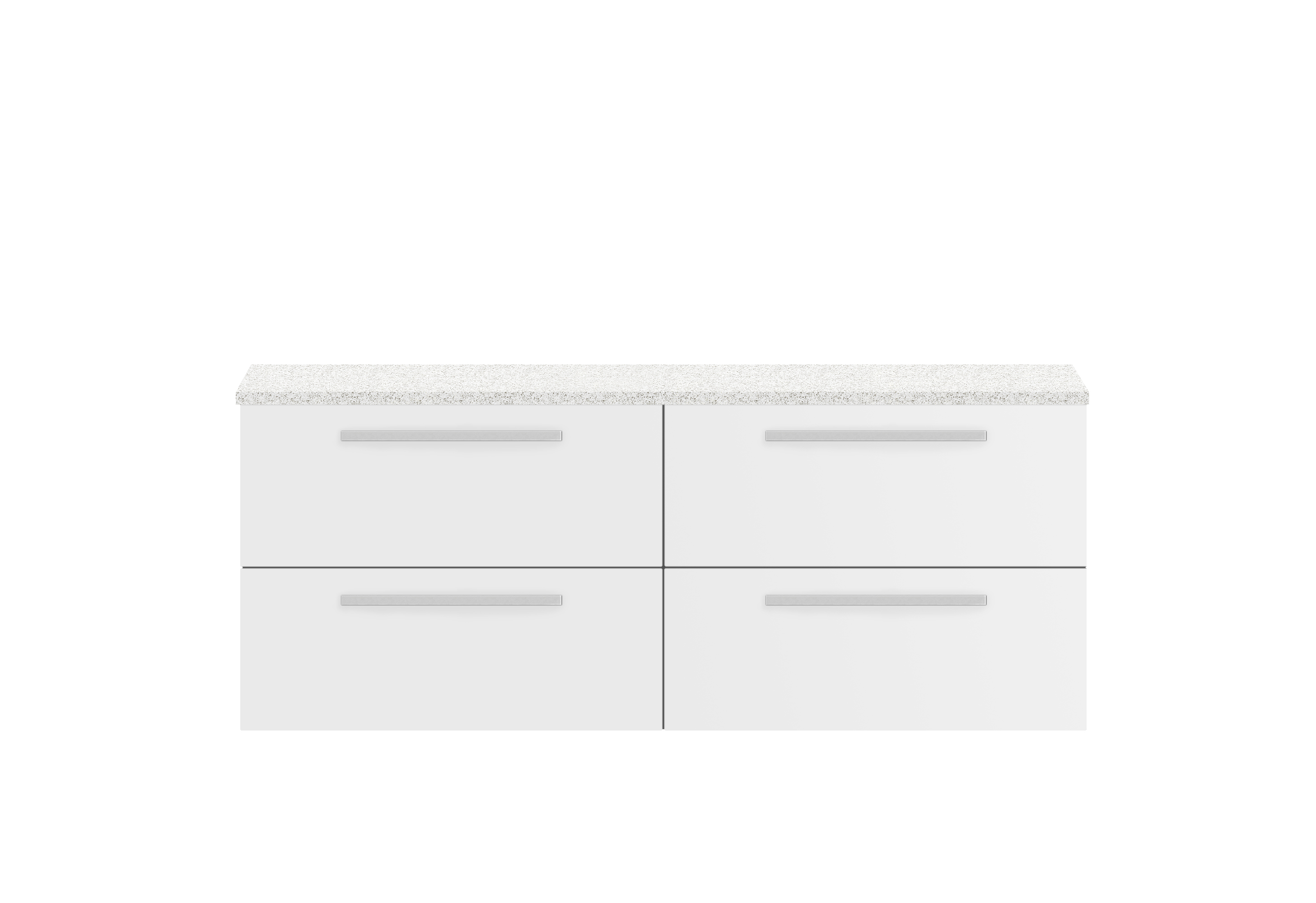 Hudson Reed Quartet Wall Hung 4 Drawer Double Cabinet with Sparkling White Worktop 1440mm - Gloss White