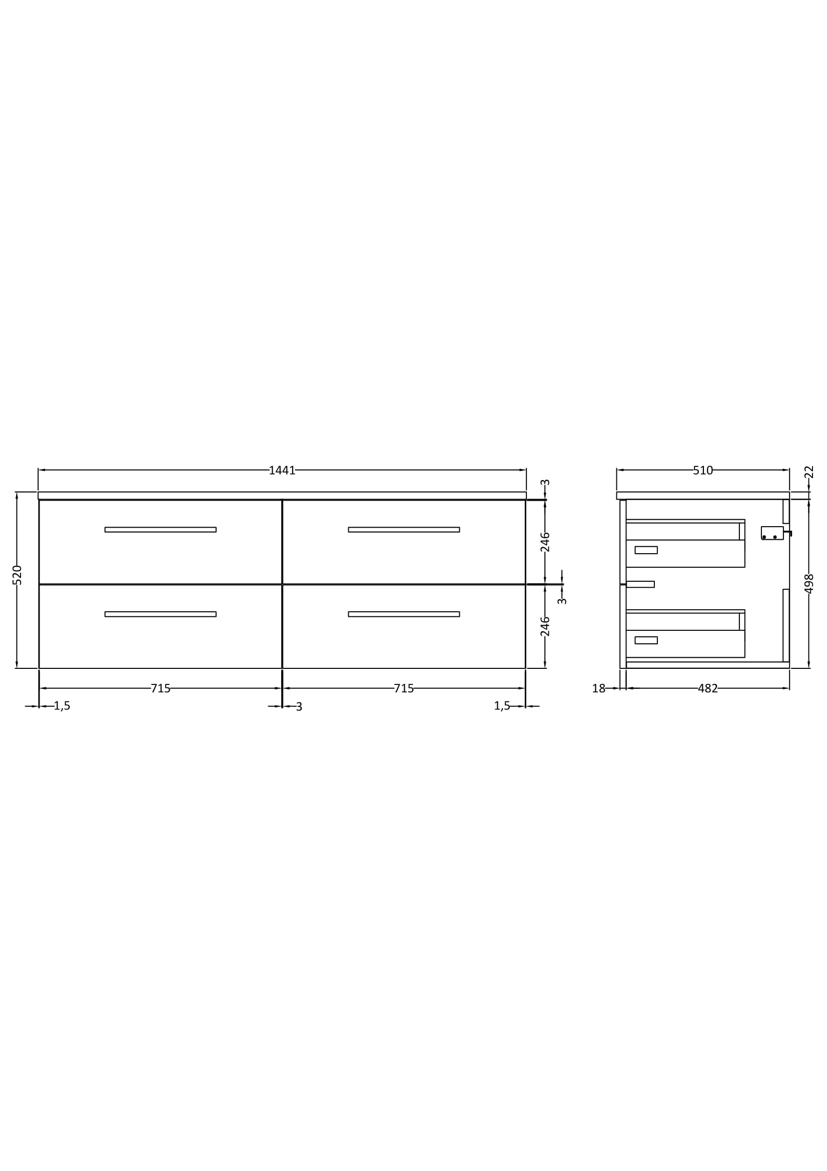 Hudson Reed Quartet 1440mm Wall Hung 4 Drawer Cabinet With Laminate Worktop