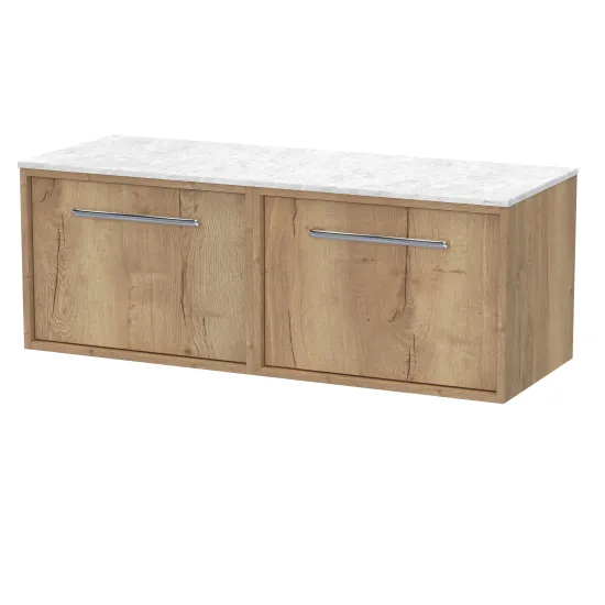 nuie Lux Roseburn 1200mm Wall Hung 2 Drawer Unit and Marble Worktop - Autumn Oak