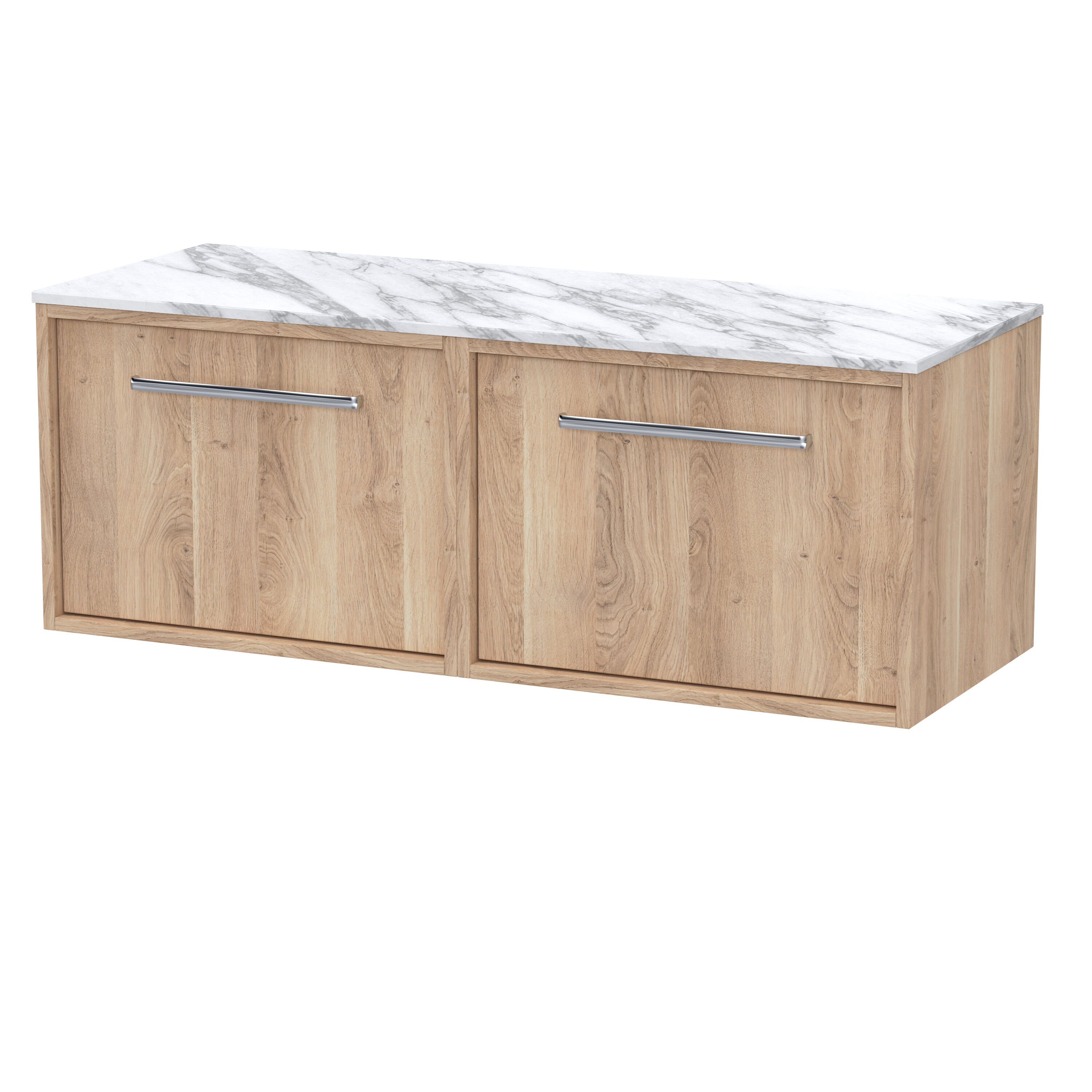 nuie Lux Roseburn 1200mm Wall Hung 2 Drawer Unit and Marble Worktop - Bleached Oak