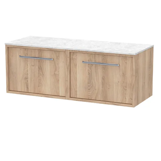 Roseburn 1200mm Wall Hung 2 Drawer Unit and Marble Worktop - Bleached Oak