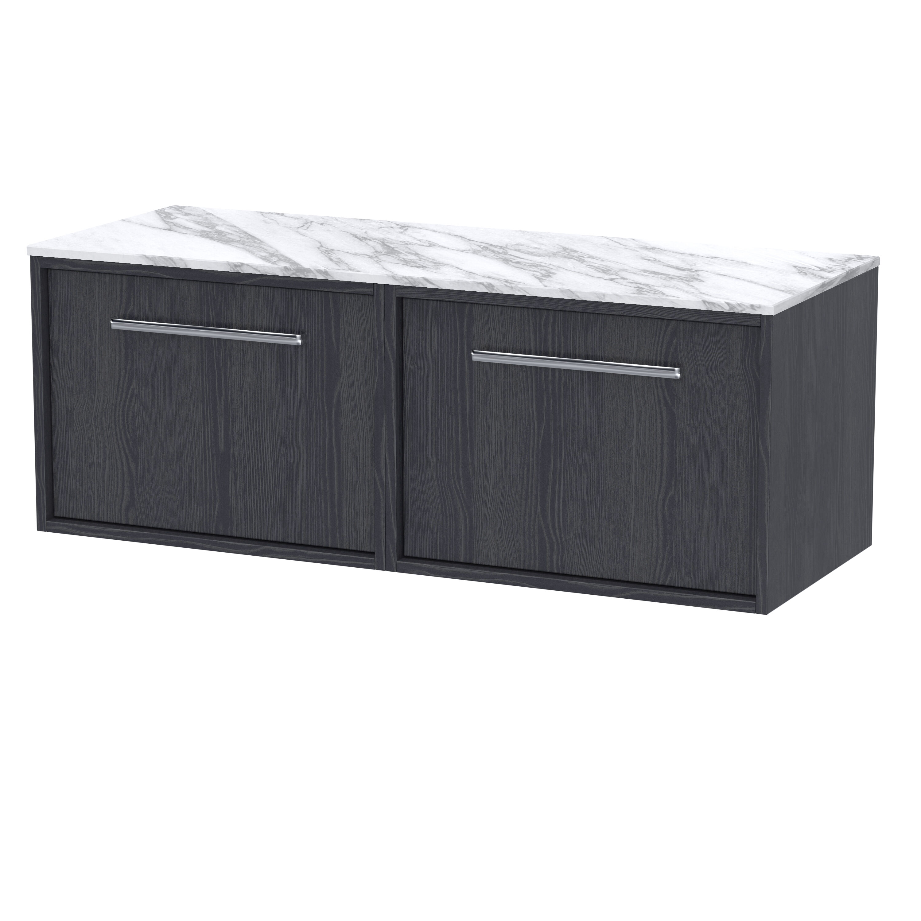 nuie Lux Roseburn 1200mm Wall Hung 2 Drawer Unit and Marble Worktop - Graphite Grey Woodgrain