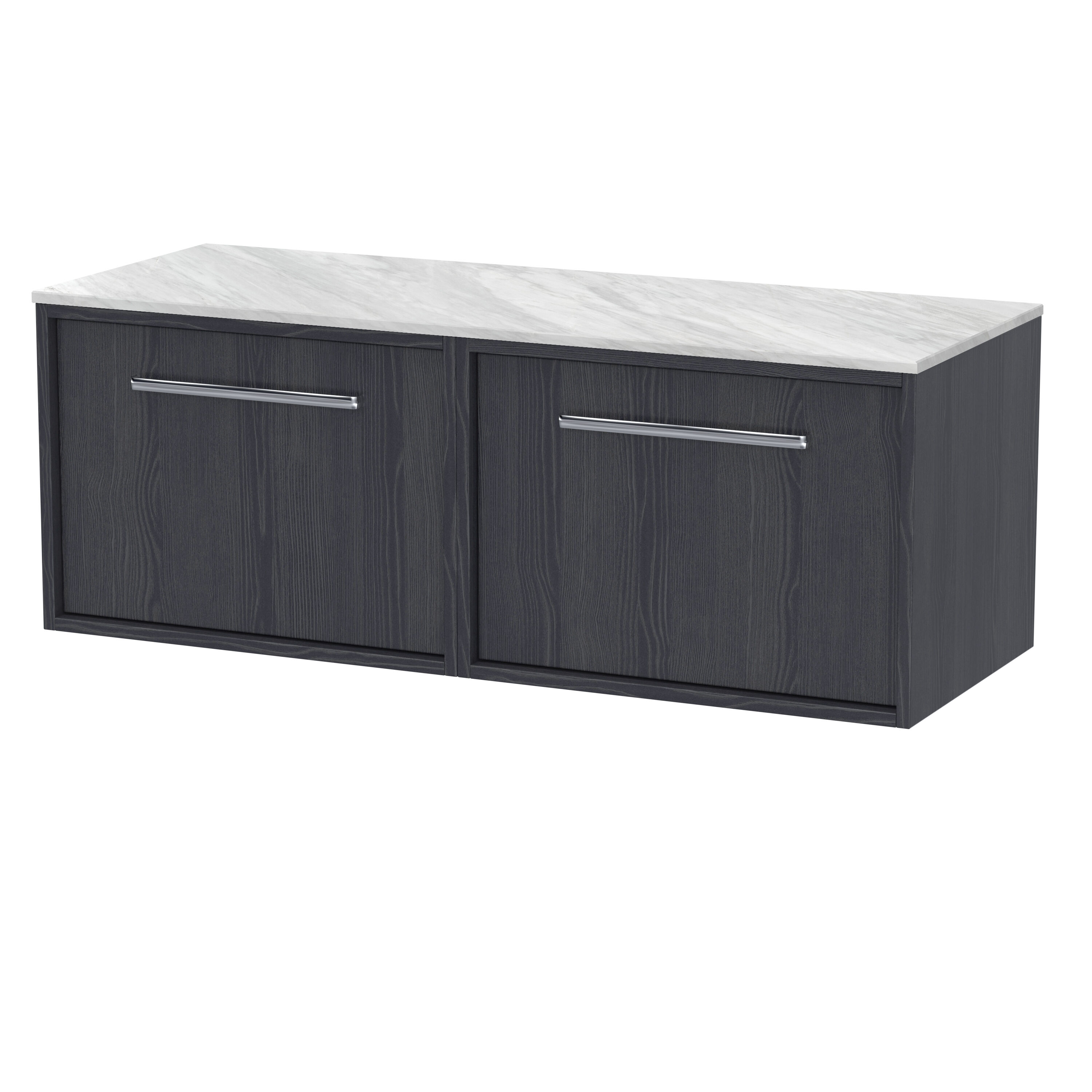 nuie Lux Roseburn 1200mm Wall Hung 2 Drawer Unit and Marble Worktop - Graphite Grey Woodgrain