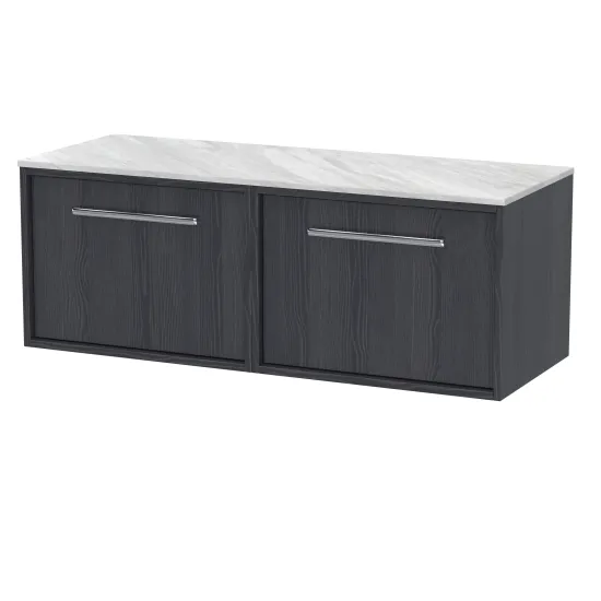 Roseburn 1200mm Wall Hung 2 Drawer Unit and Marble Worktop - Graphite Grey Woodgrain