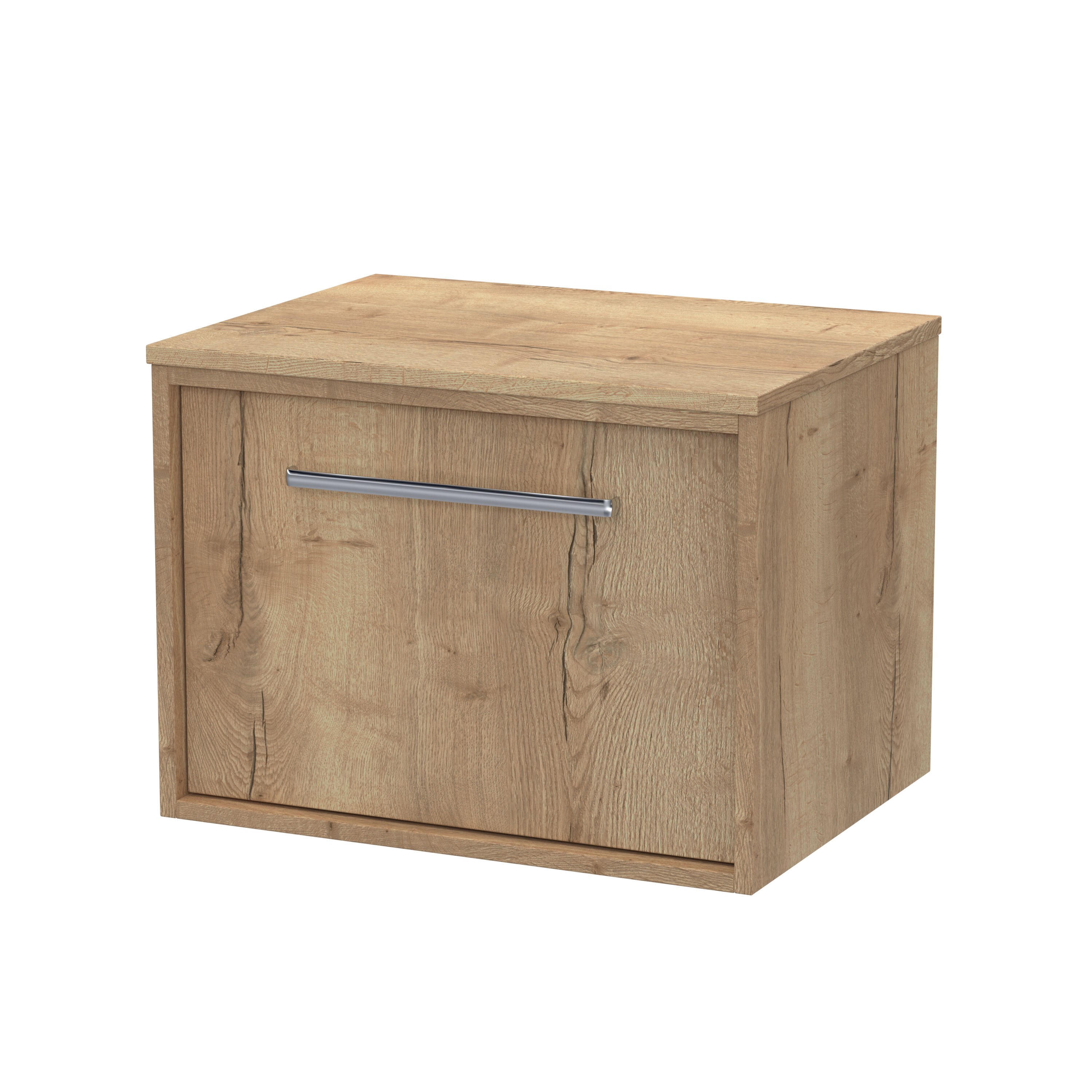 nuie Lux Roseburn 600mm Wall Hung 1 Drawer Unit and Co-ordinating Worktop - Autumn Oak