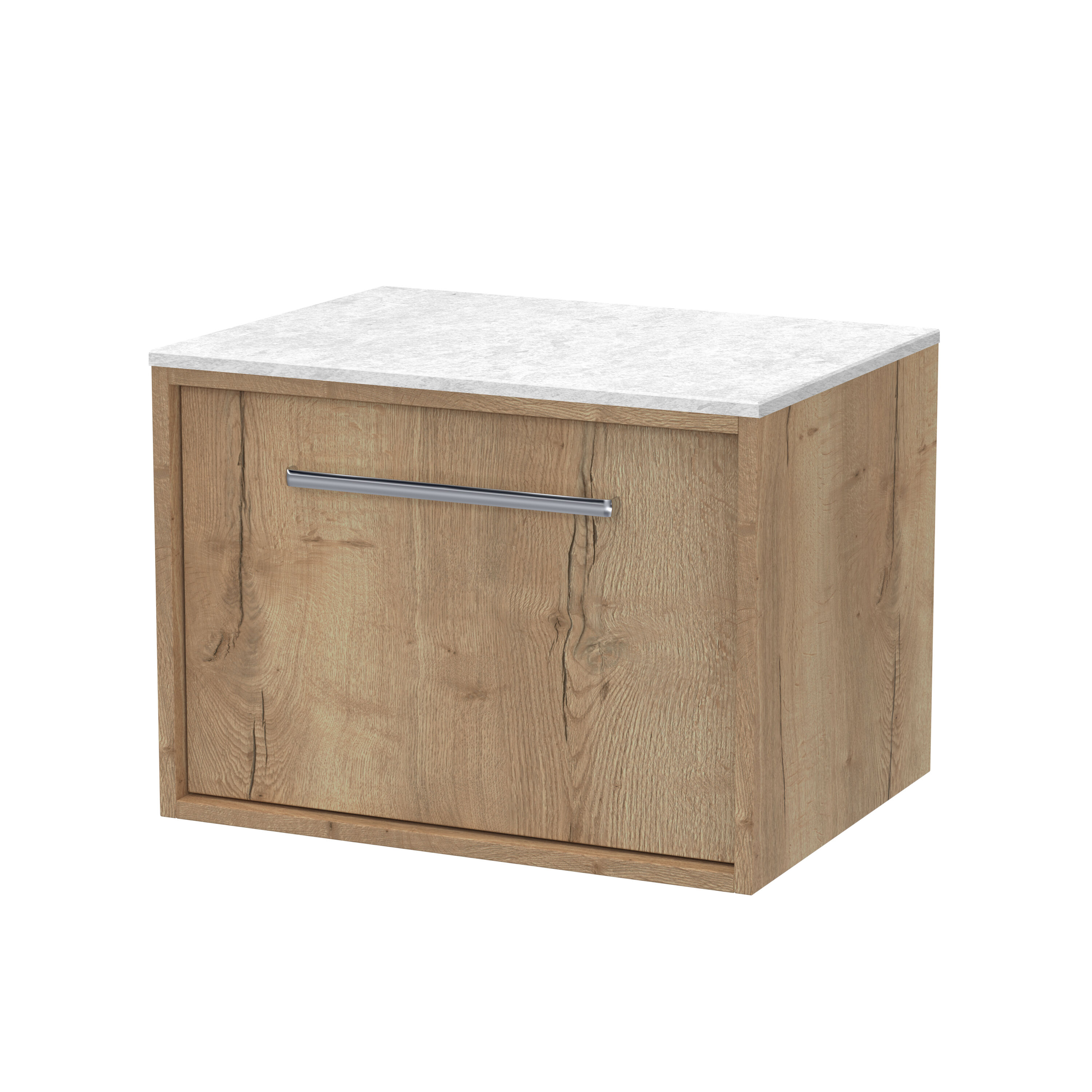 nuie Lux Roseburn 600mm Wall Hung 1 Drawer Unit and Marble Worktop - Autumn Oak