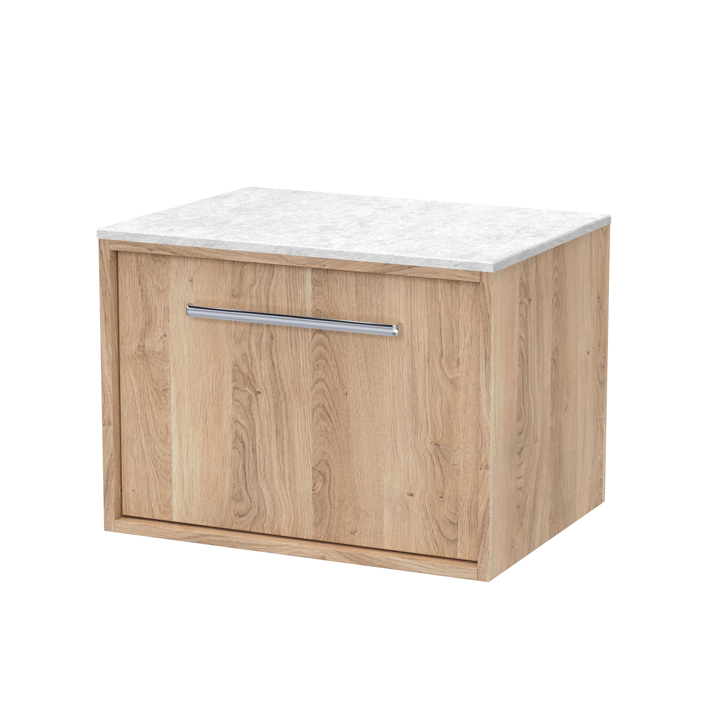 nuie Lux Roseburn 600mm Wall Hung 1 Drawer Unit and Marble Worktop - Bleached Oak