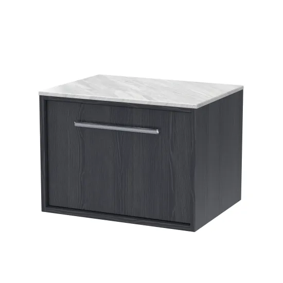 nuie Lux Roseburn 600mm Wall Hung 1 Drawer Unit and Marble Worktop - Graphite Grey Woodgrain