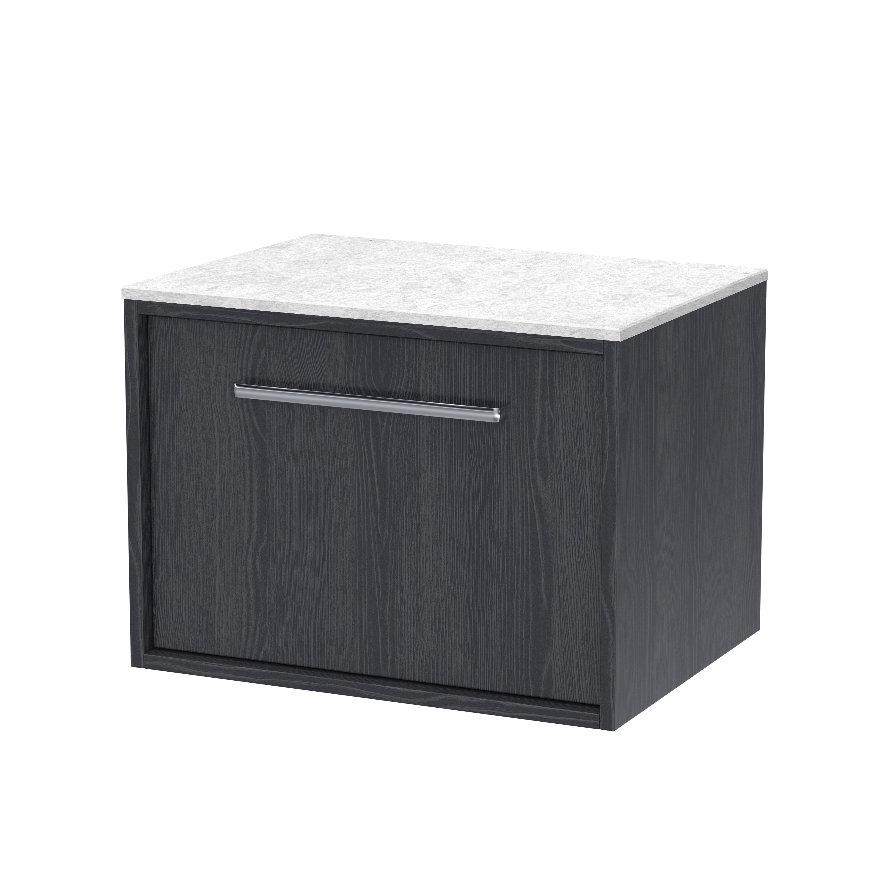 Roseburn 600mm Wall Hung 1 Drawer Unit and Marble Worktop - Graphite Grey Woodgrain