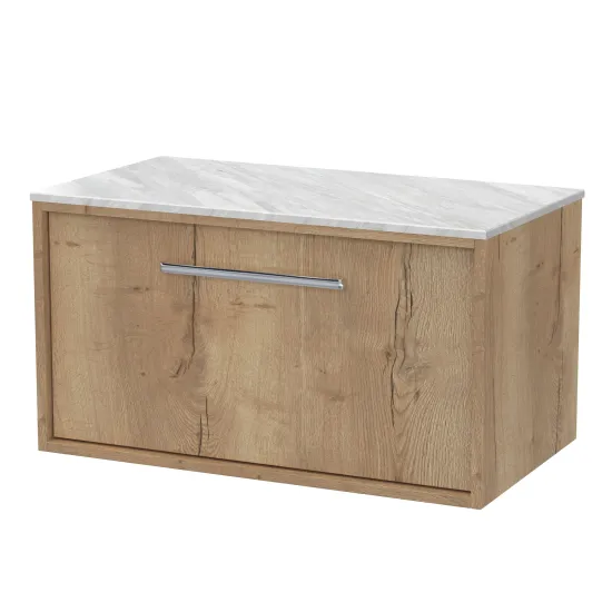 nuie Lux Roseburn 800mm Wall Hung 1 Drawer Unit and Marble Worktop - Autumn Oak