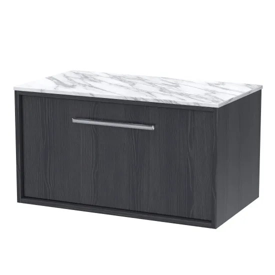 Roseburn 800mm Wall Hung 1 Drawer Unit and Marble Worktop - Graphite Grey Woodgrain