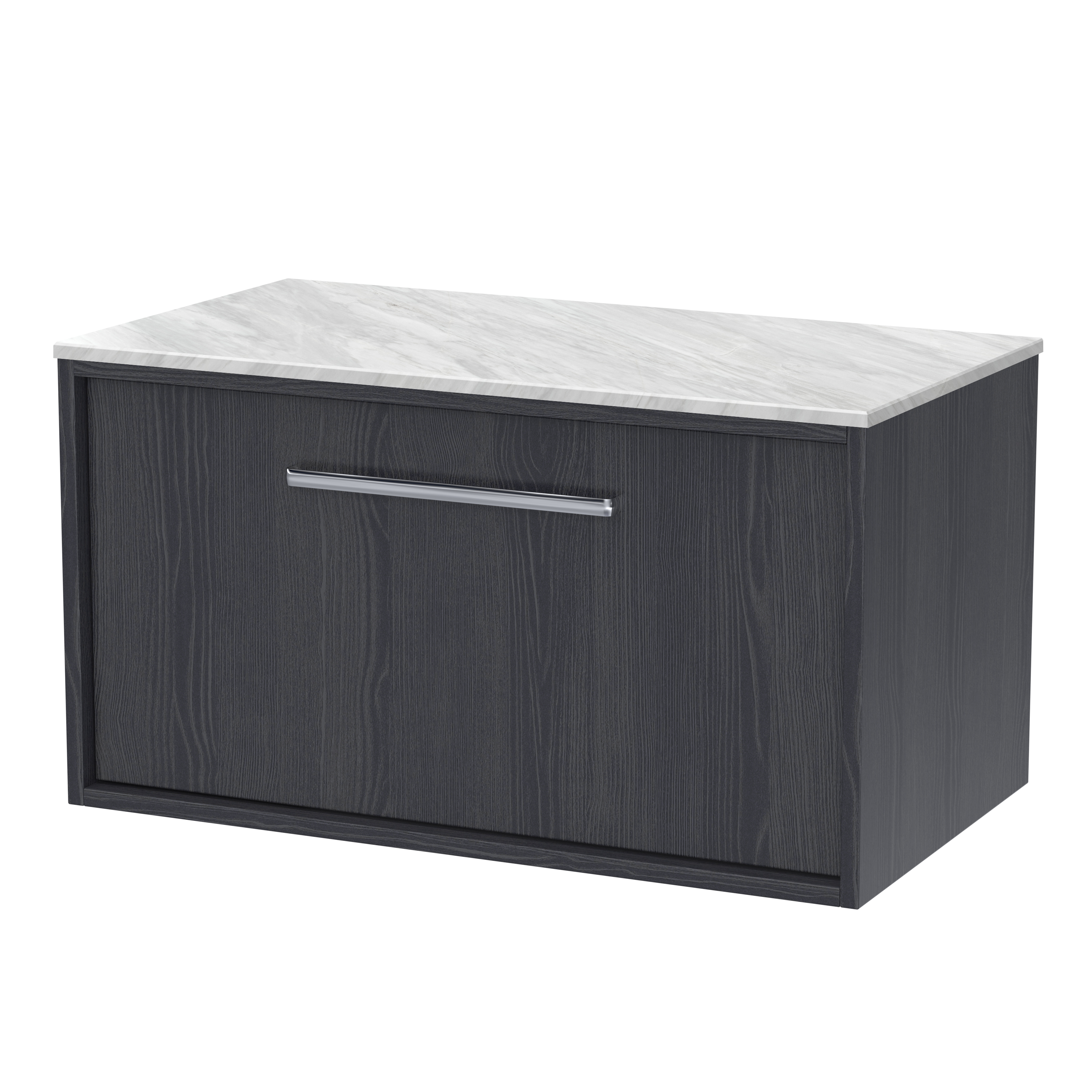 Roseburn 800mm Wall Hung 1 Drawer Unit and Marble Worktop - Graphite Grey Woodgrain