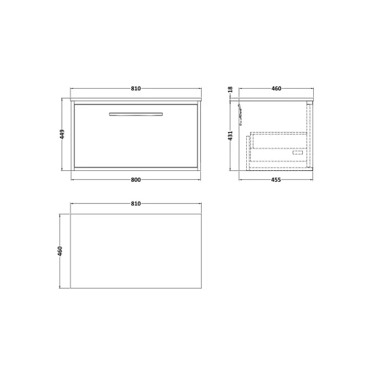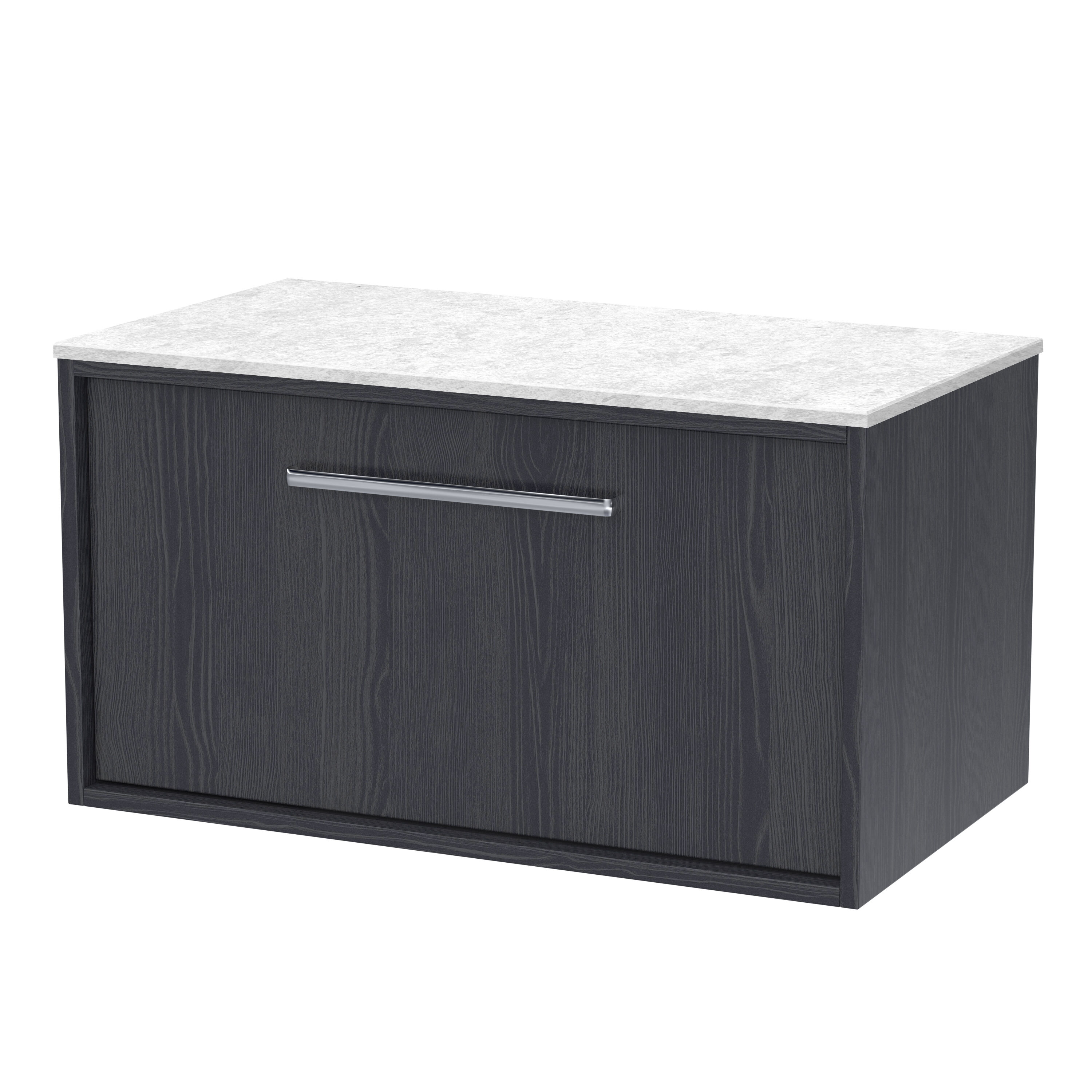 nuie Lux Roseburn 800mm Wall Hung 1 Drawer Unit and Marble Worktop - Graphite Grey Woodgrain