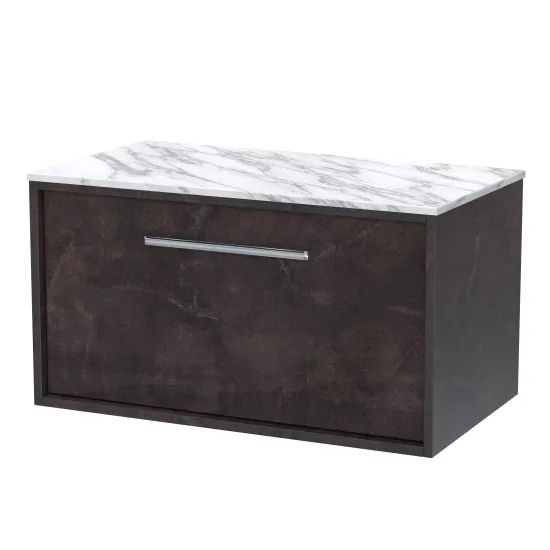 BC Designs Roseburn 800mm Wall Hung 1 Drawer Unit with Marble Worktop in Metallic Slate With Soft Close Drawer