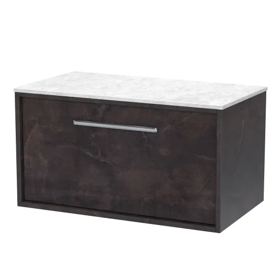 BC Designs Roseburn 800mm Metallic Slate Wall Hung 1 Drawer Unit and Marble Worktop With Soft Close Drawer