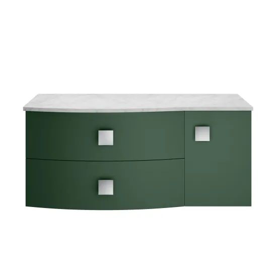 Hudson Reed Sarenna Wall Hung Left Hand 2 Drawer 1 Door Vanity Unit with Grey Marble Top 1000mm - Hunter Green