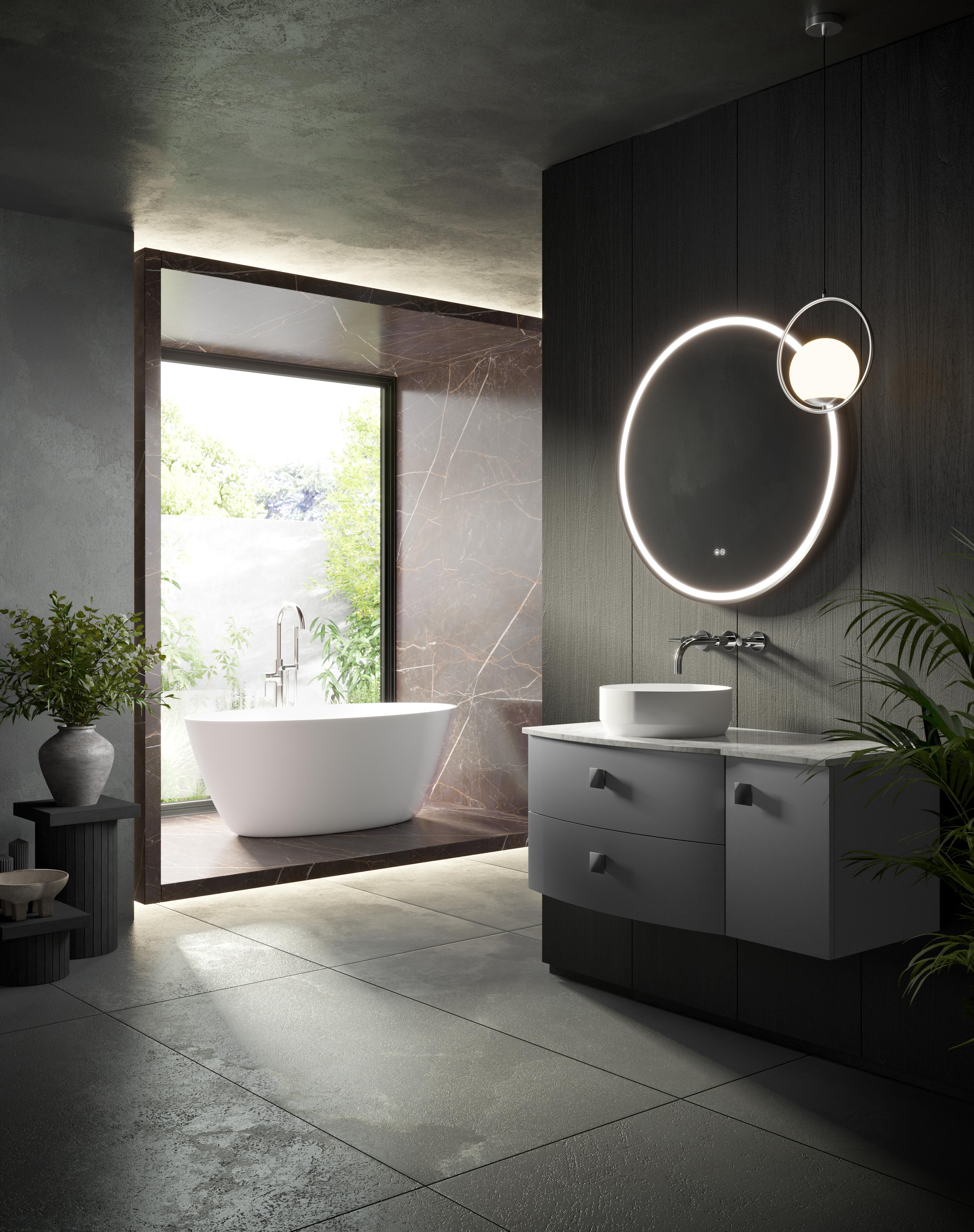 A unique curved design and contemporary colour palette ensures that the Sarenna furniture range will add a stunning focal point to any bathroom