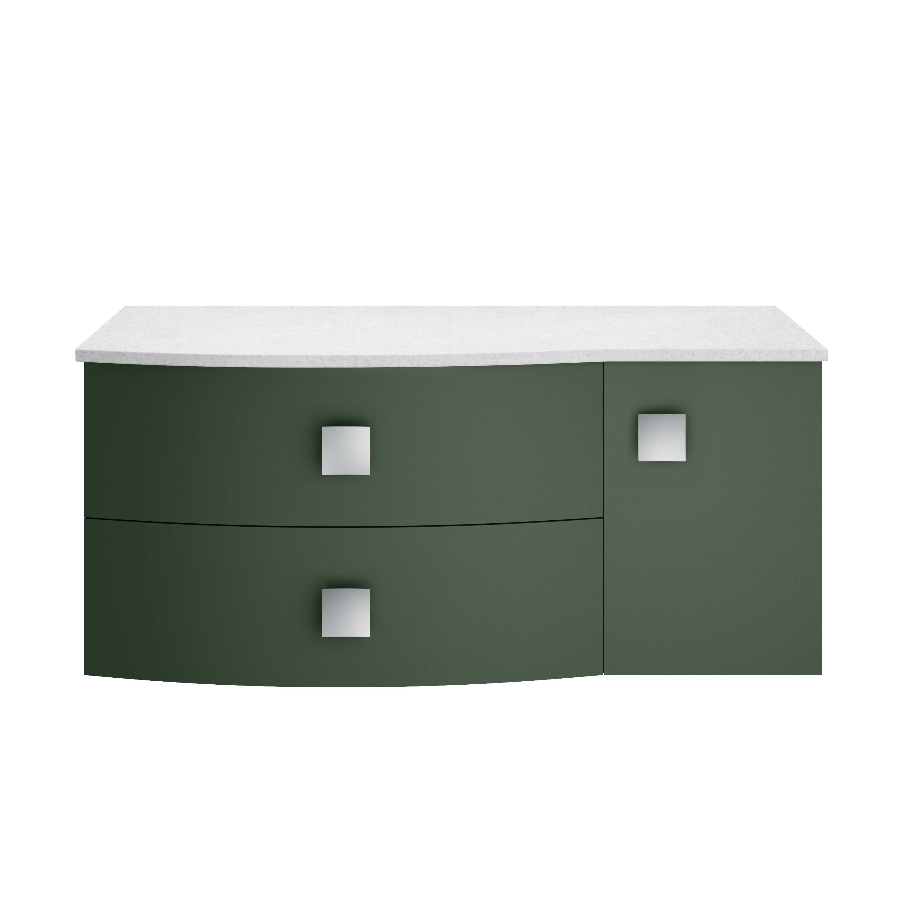 Hudson Reed Sarenna Wall Hung Left Hand 2 Drawer 1 Door Vanity Unit with White Marble Top 1000mm - Hunter Green