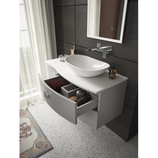 A unique curved design and contemporary colour palette ensures that the Sarenna furniture range will add a stunning focal point to any bathroom