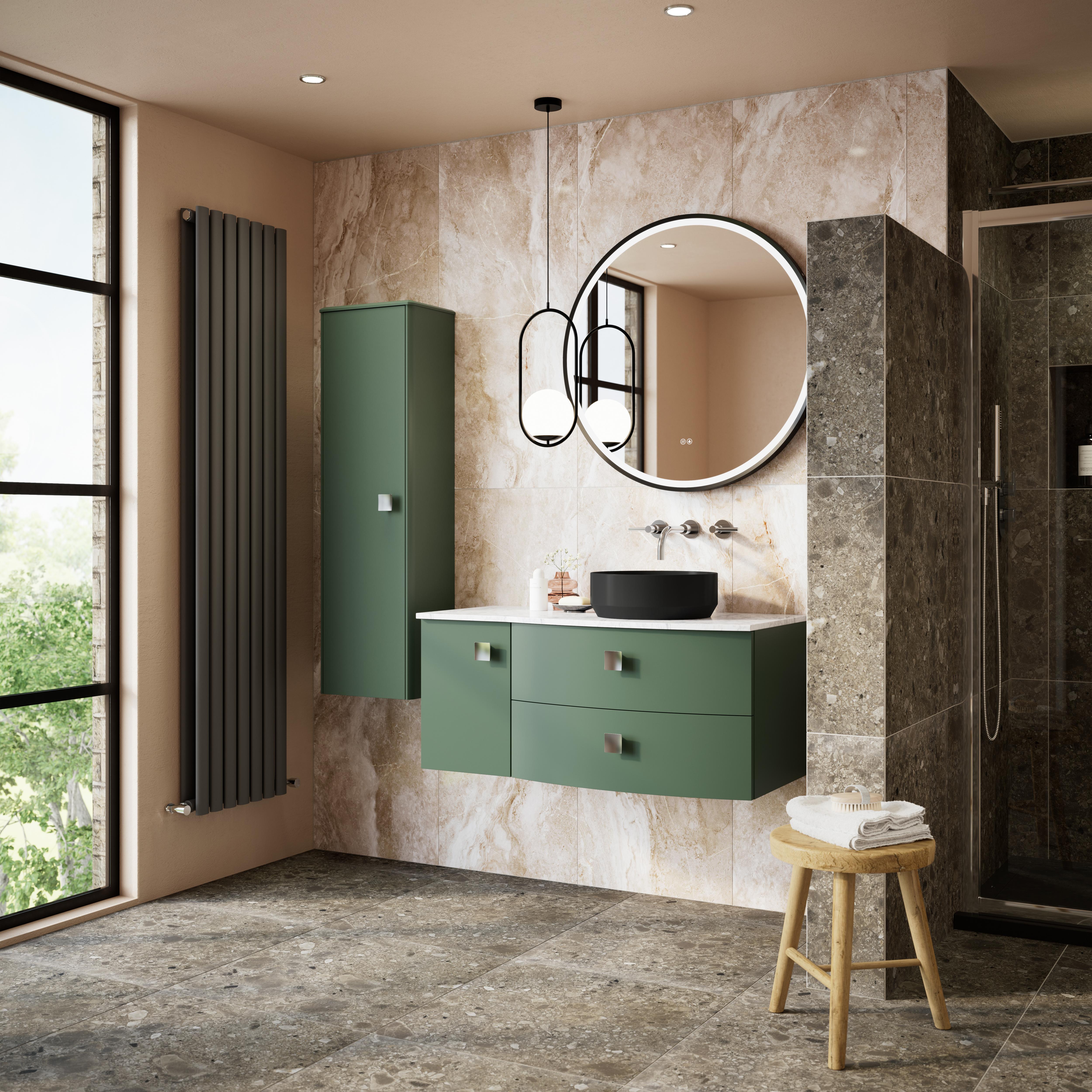 Hudson Reed Sarenna Wall Hung Right Hand 2 Drawer 1 Door Vanity Unit with White Marble Top 1000mm - Hunter Green