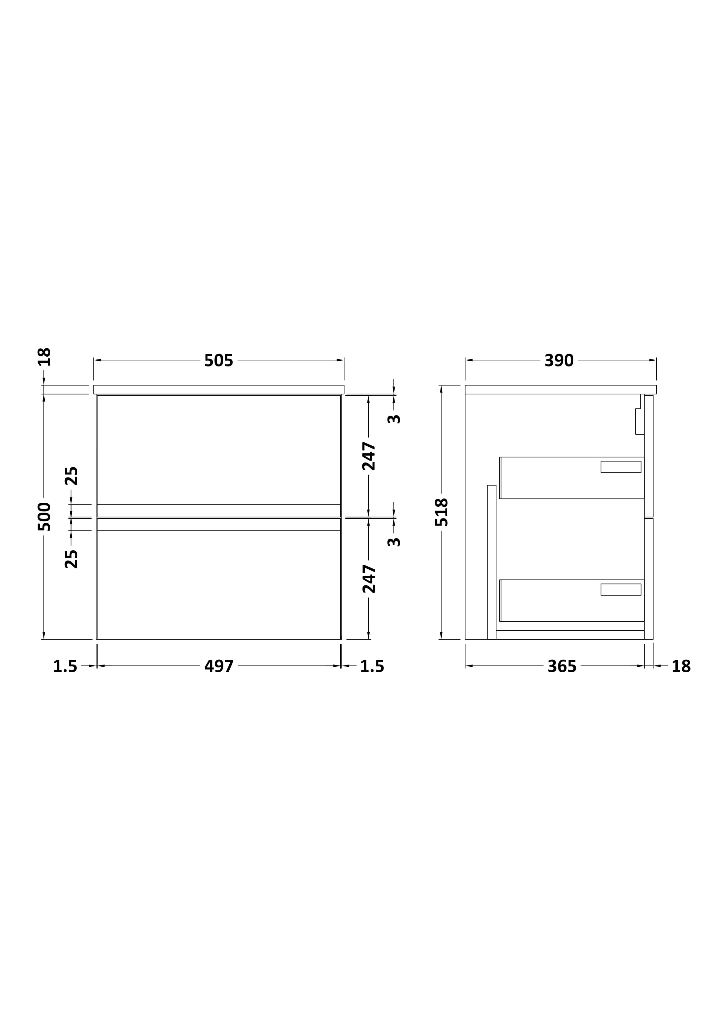 Hudson Reed Urban 500mm Wall Hung 2-Drawer Unit With Worktop