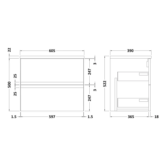 Hudson Reed Urban 600mm Wall Hung 2-Drawer Unit & Laminate Worktop - Soft Black