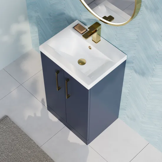 Nuie 500mm Midnight Blue Floor Standing 2 Door Vanity Unit with Basin