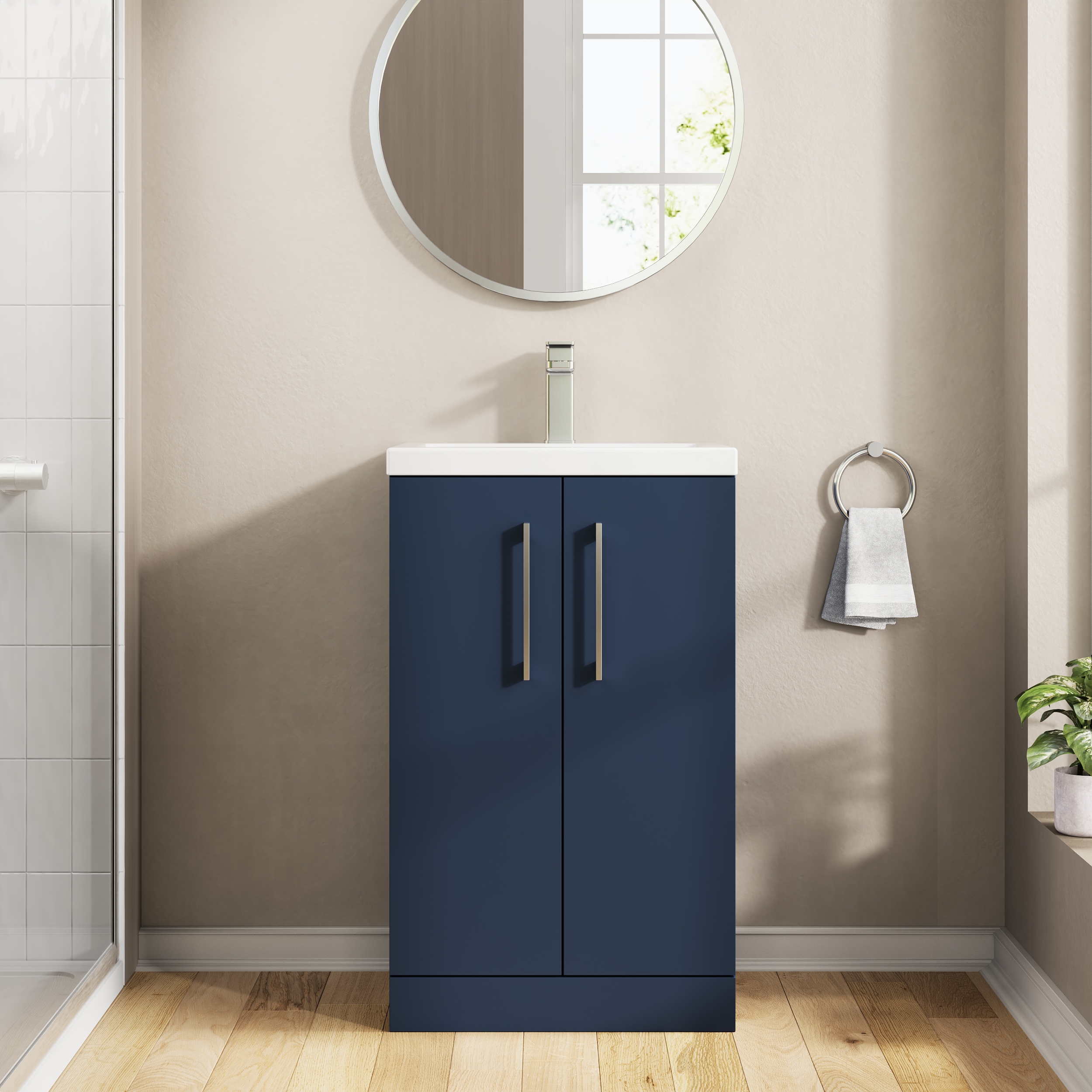 nuie 500mm Floor Standing 2-Door Vanity & Ceramic Basin - Midnight Blue