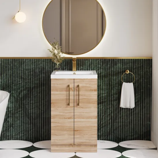 nuie 500mm Floor Standing 2-Door Vanity & Polymarble Basin - Bleached Oak